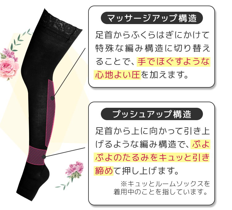 | ●医療目的にご使用しないでください。 ●締め過ぎと感じる場合は適度な着脱を繰り返してください。 ●部分的に締め付けが強くなるおそれがありますので、できるだけシワをのばして着用してください。 ●着圧機能のついた製品との併用は危険ですのでおやめください。 ●最初は短時間の着用から開始して、徐々に着用時間を延ばすようにしてください。 ●使用感には個人差があります。 ●お肌に合わない場合や、かぶれ・かゆみ等を感じた場合はご使用をおやめください。 ●現在、病気やけがなどによるむくみやだるさを感じる方、血圧の高い方、心臓・腎臓などに障害のある方、かゆみや発疹を起こしている方、血行障害を起こしたことがある方、その他体に異常を感じる方は本品着用に関して事前に医師にご相談ください。 ●ご使用中、またはご使用後に異常を感じた場合はすぐにご使用をおやめください。 ●妊娠中の方や妊娠の可能性のある方は、ご使用する前に本品の使用について専門医にご相談ください。 ●サイズが合わない場合は無理に着用しないでください。 ●生地部分に爪を立て、無理に引っ張ると破れるおそれがあります。着脱の際はご注意ください。 ●乳幼児の手の届かない場所に保管してください。 ●火気のそばや高温多湿な場所、直射日光の当たる場所には保管しないでください。 ●本来の目的以外でのご使用はおやめください。 ●印刷の都合上、実際の商品と多少色が異なる場合があります。 ●重度の血行障害のある方は使用しないでください。 ●次の方は着用時に医師にご相談をしてください。 ・糖尿病、深部静脈血栓症、血行障害、うっ血性心不全、炎症性疾患、装着部位の神経症害などで治療を受けている方。 |